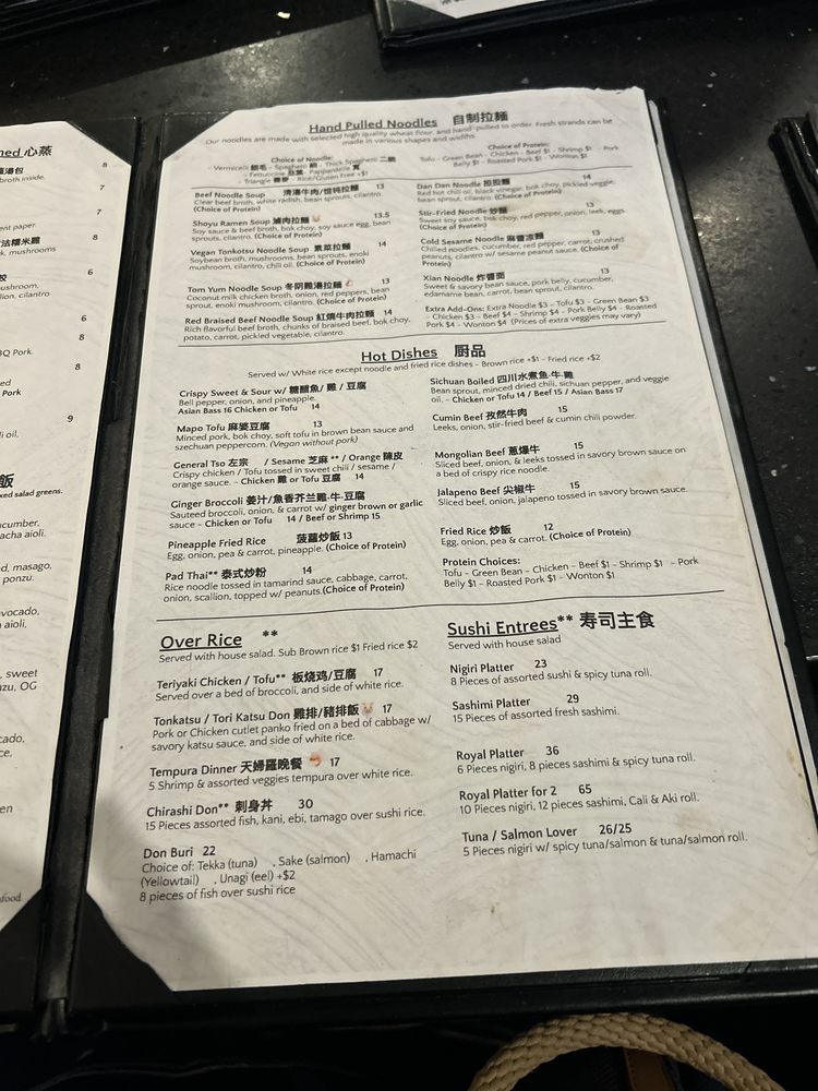 Introducing the menu at Xian Sushi & Noodle - Domain, a Black-owned and Women-owned restaurant located in Austin, TX. This casual spot offers vegan and vegetarian options, along with wheelchair accessibility and free Wi-Fi. The menu includes a variety of sushi, noodle dishes, and bento boxes. Customers rave about the hand-pulled noodles and flavorful soup dumplings. Sake, wine, and beer are available to complement your meal. Happy hour specials and a diverse drink selection make this a great spot for a relaxed dining experience. The ambiance is pleasant, with attentive service and a central location in the Domain area. Don't miss the opportunity to try the red braised beef noodles soup or the General Tso chicken for a satisfying and affordable meal.