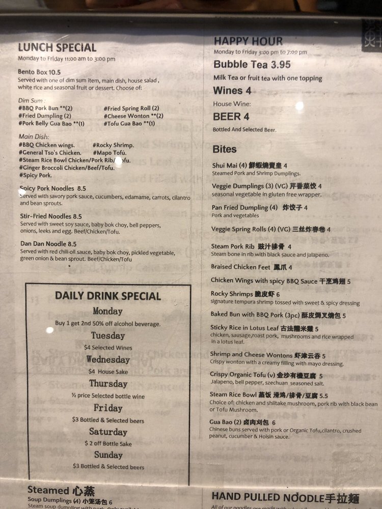 Red hot chili oil, black vinegar, bok choy, pickled veggie, bean sprout, cilantro. (Choice of Protein)