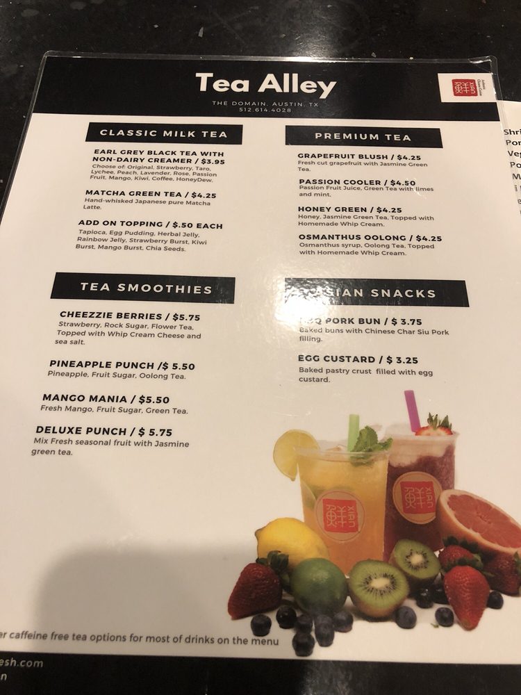 Passion Fruit Juice, Green Tea with Limes and Mint
